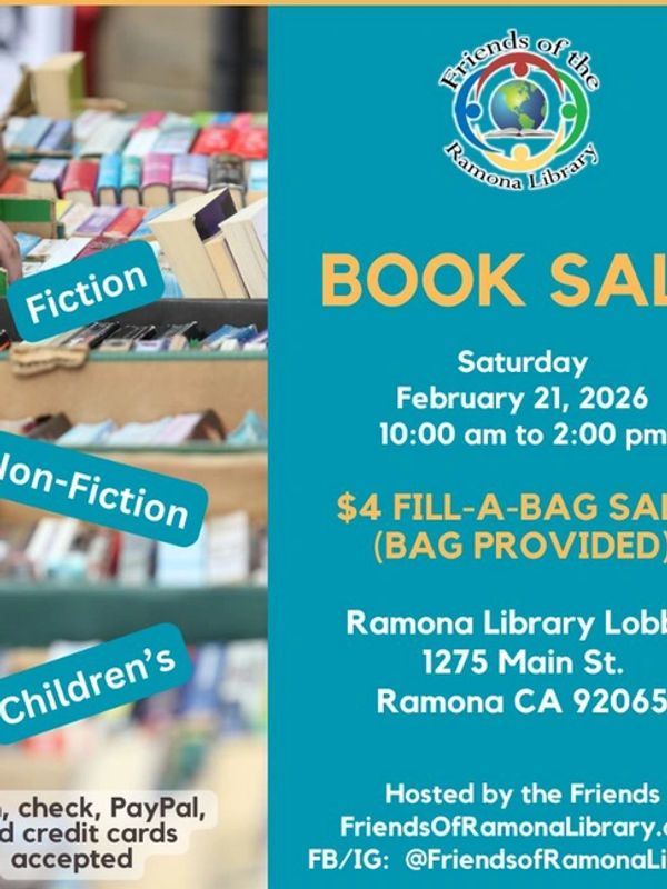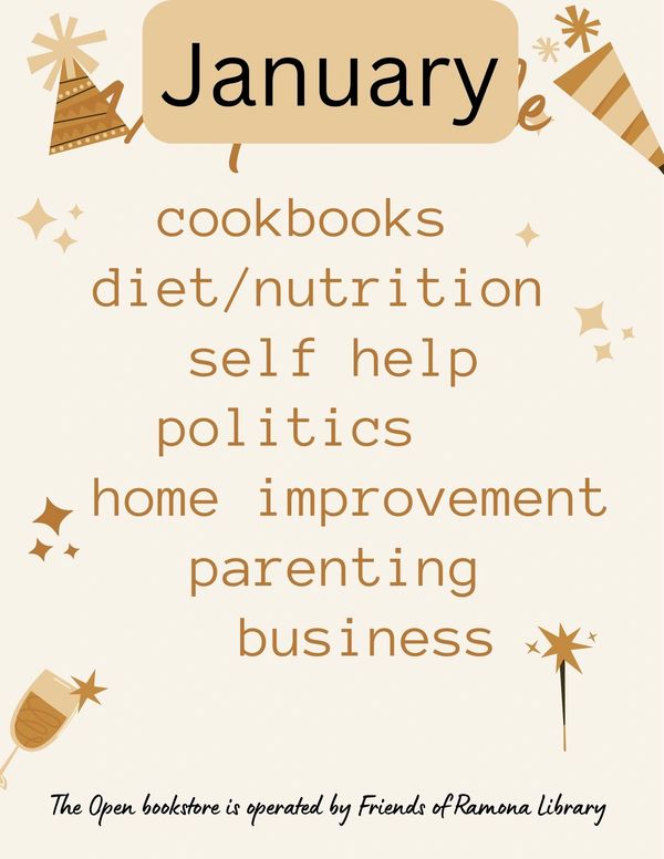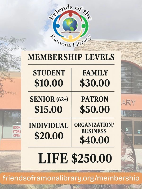 When you shop at the bookstore, you are directly contributing to the Ramona Library. Proceeds from every purchase go towards funding library programs, new books, magazines and improving our facilities. Join us today and make an impact.