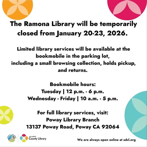 McNamara is president of the Friends of the Ramona Library, a 501(c)(3) that supports library projects, materials and programs through supplemental funding.
