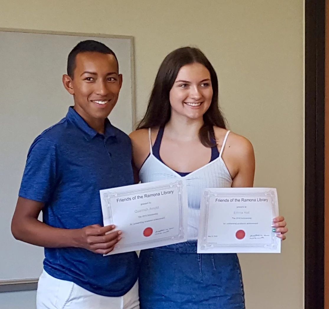 The Friends of the Ramona Library awarded scholarships to local teens who are heading off to college What remarkable and well-accomplished students we have locally. Hats off to the recipients!